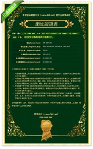 網址認證證書 是由各網域名稱註冊單位授權群盟科技並由群盟科技(name.080.net)製作及頒發的證書,此證書可以證明網址是在群盟科技 (name.080.net)申請,並已經提供相關文件經由群盟科技(name.080.net)審核通過,具有一定真實性和可靠性的網址。 對於目前紛繁複雜的網絡世界,越來越多的網絡安全問題困擾著人們,人們想真實具體的瞭解一個網站是由誰來建製、運營並提供服務的,我們正是契合了人們的需 要推出【網址認證證書】服務。網站的經營者將【網址認證證書】放置在他的網站上,訪問網站的用戶可以隨時點進去瞭解網址所有者的情況,對於用戶是個安心的 保障。 對於網站的所有者,將此【網址認證證書】放置在您的網站上,您的客戶將會看到此證書,我們以第三方的身份提供網址證書,讓您的客戶瞭解網址所有人的合法性,有利於他們更放心的使用您的網站。 申請網址證書,有兩種途徑: 1、新申請網址時,可以在我們購物車中看到附加服務申請【網址證書】,只要選擇申請【網址證書】服務,並完成繳費,我們會請您提供公司相關證明資 料,審核無誤後,即可獲得【網址證書】。您可以從網址管理介面Copy代碼放置於您網站合適位置,點選後【網址證書】即可秀在您的網站上了。 2、已經申請好的網址需要購買【網址證書】,請您先利用帳密登陸http://name.080.net/domain,然後可以看到網址前面顯示的圖標,點選【網址未認證】,生成訂單完成繳費以及資料審核後,即可獲得【網址證書】。 【網址認證證書】正式頒發后效果頁面請參考下圖:
